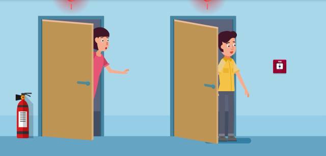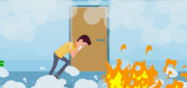 先感受门把手温度,温度高了可别开门,还要用湿布封堵门缝、淋水降温,同时在明显位置发出求救信号,等待救援。温度正常则开门观察情况后合理逃生。