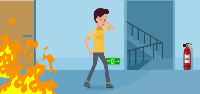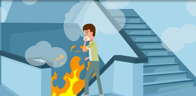 要通过疏散楼梯、走道等向室外安全区域撤离,如烟气已蔓延,要佩戴逃生面罩或用湿毛巾等捂住口鼻,低姿前行,如有需要,用湿被褥等裹住身体。